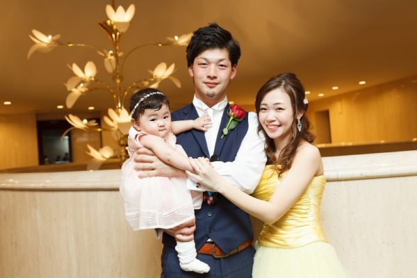 挙式には幼稚園の先生をしていた美奈さんの生徒さんがたくさん見に来てくださり、たくさんの笑顔が溢れていました。披露宴ではお子様に参加してもらったり、入場時にライブのように歌ったり、ゲストの皆さんでできる似顔絵ゲームも行いました。とてもにぎやかで楽しい時間になりました。