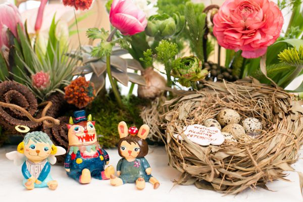 デザインがお好きなおふたり。オリジナルのキャラクターを使ってコーディネイトしたり、絵をたくさん飾ったり、ゲストの方が絵本の世界に遊びにきたような空間を創り、レストラン全体で楽しめるそして印象に残る一日を創りました。