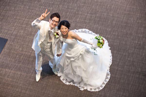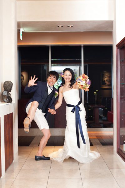 真千子さんがこだわったカラフルなコーディネートに嘉大さんの力作のエンドロールとウェルカムカー、お二人のこだわりが詰まった一日でした。 お二人からは個性的なアイディアがたくさん・・・とくにメインイベントの「しぼりーちゃん」!お二人の思いでのキャラクターですが、意外なゲストの登場に会場が沸きました。