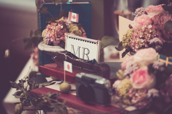 挙式の証書には地球儀を用いられたり、会場に入って頂く前には自分の席の国名が書かれたフライトチケットをお渡しすることでドキドキ感を演出♪