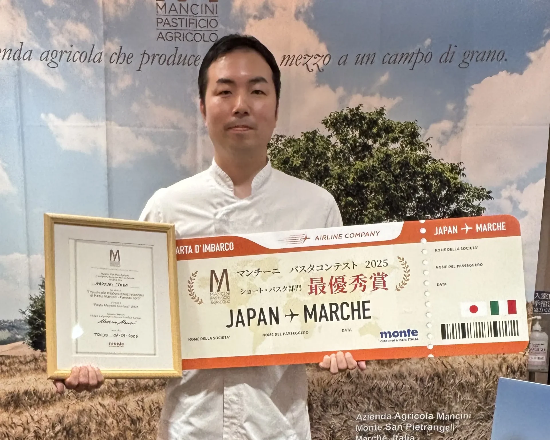 星付リストランテも認めるイタリア・プレミアム<マンチーニ社>社主催のパスタコンテストが開催され、<エノテーカピンキオーリ>の戸田シェフが最優秀賞を受賞いたしました。