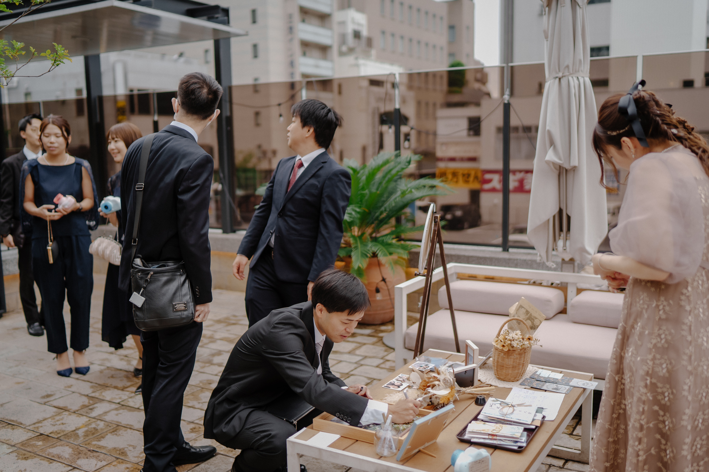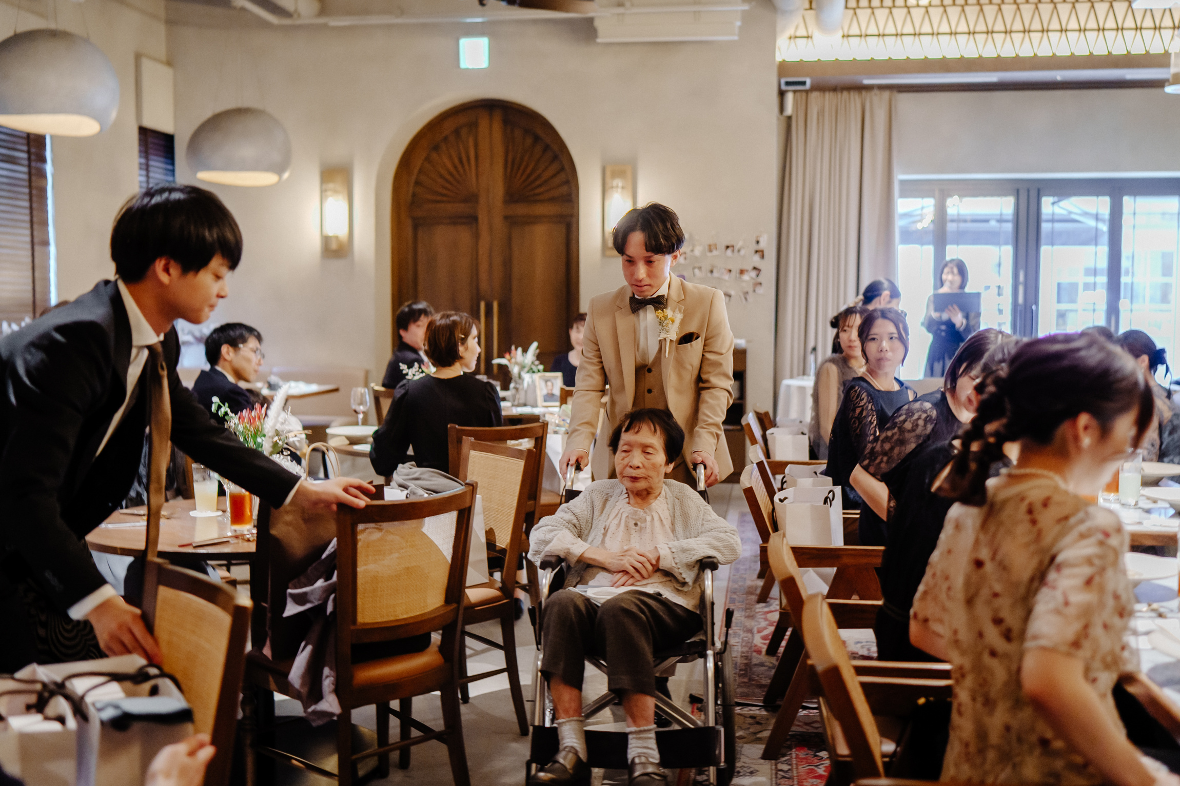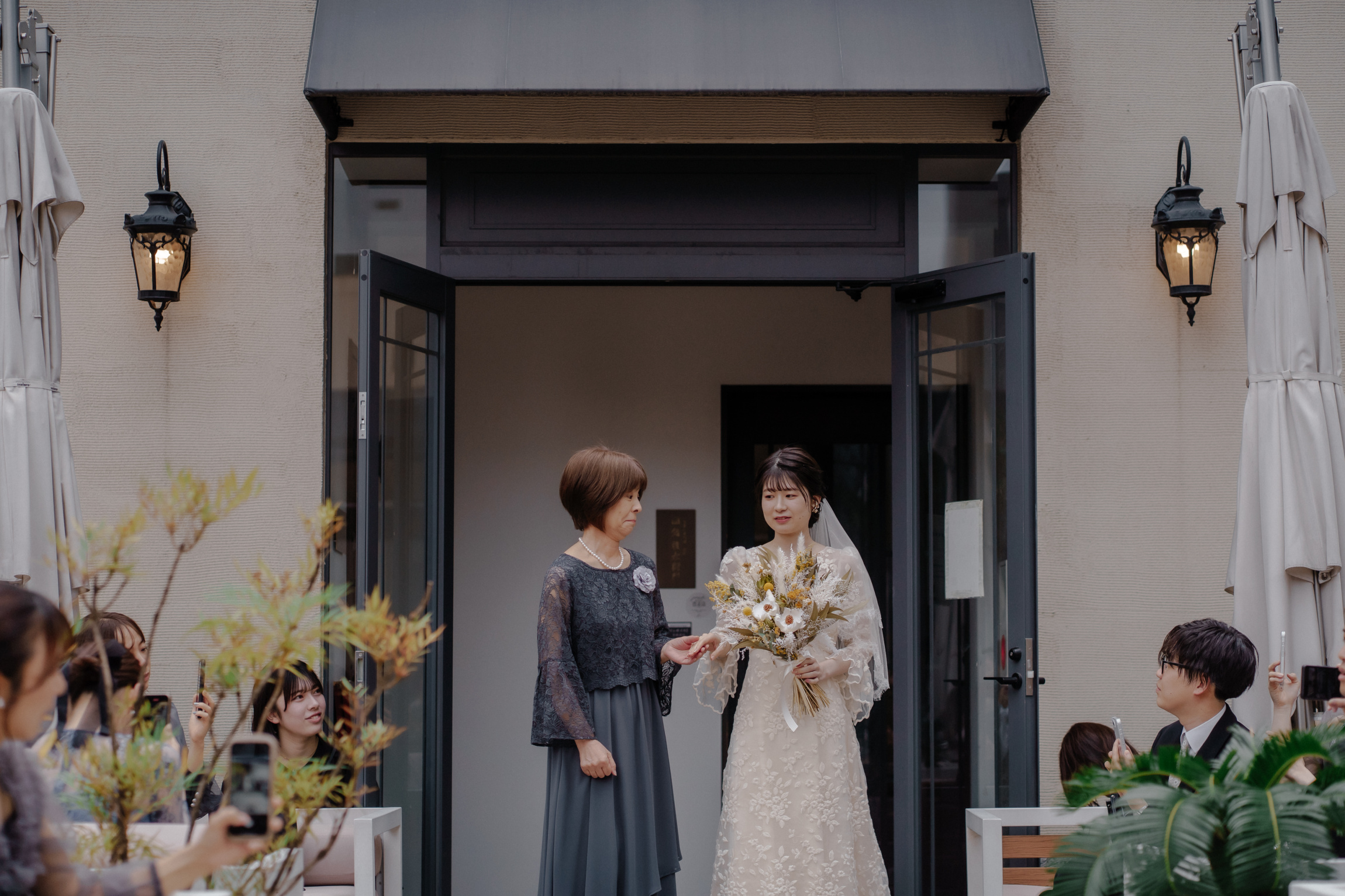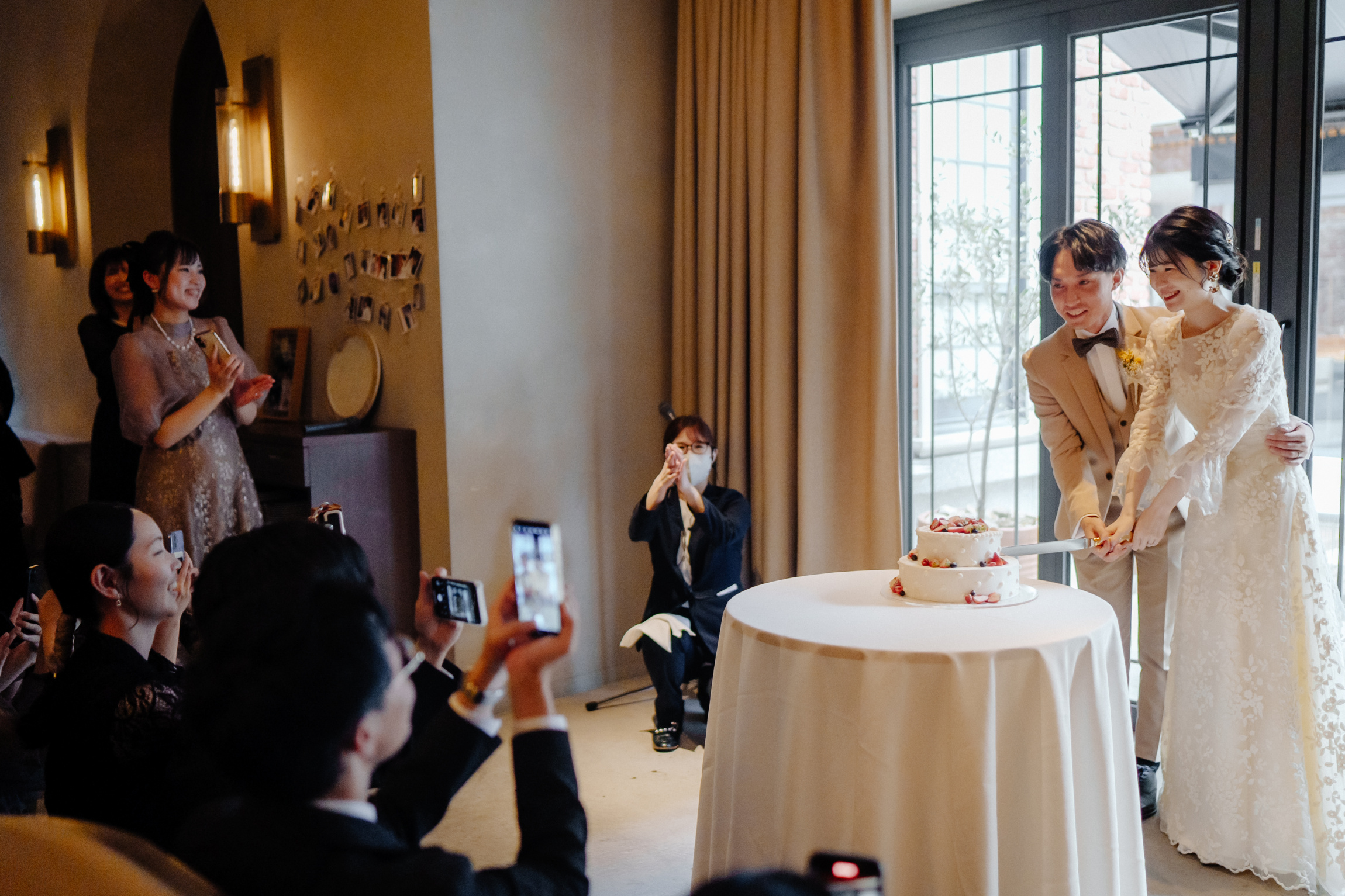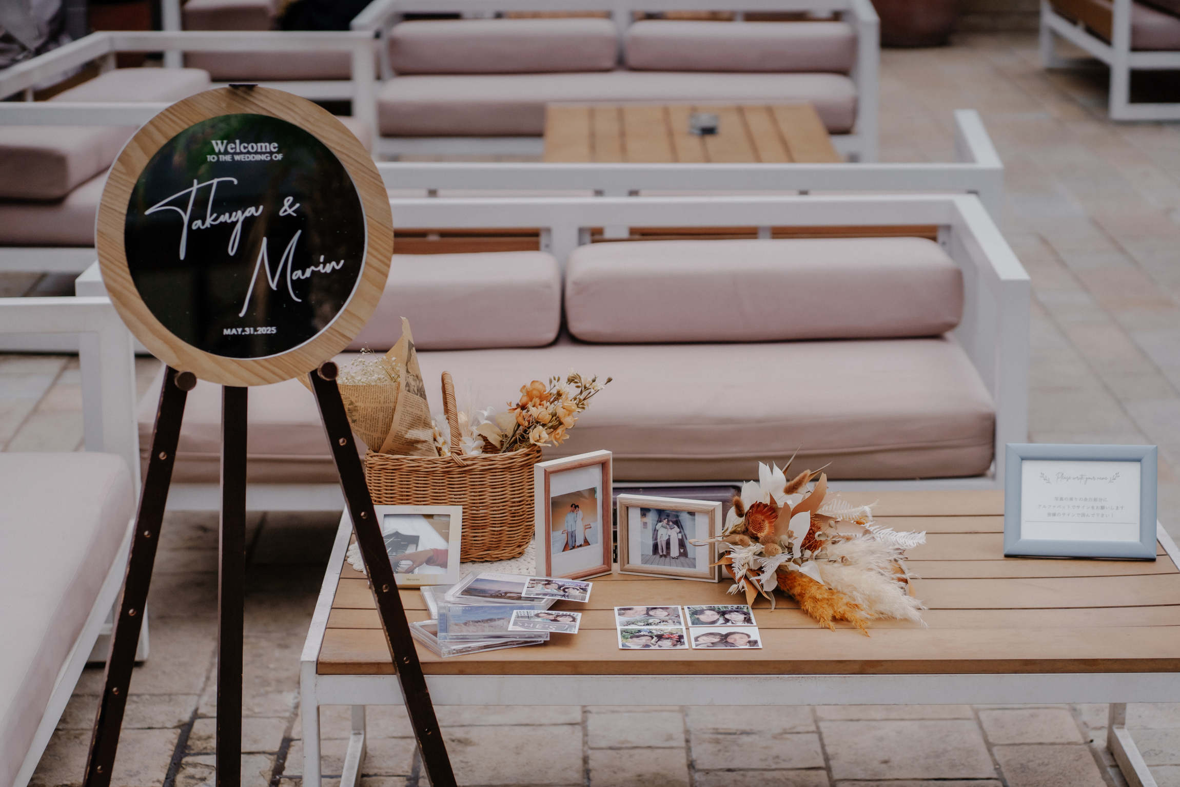 ひとりひとりに向けたメッセージをエスコートカードに仕込んだり、BGMを通して音に感謝の思いを込めたり…ひとつひとつのアイテムが大切な人たちに幸せを届けられるように、全員と顔を見合わせてゆったり過ごす時間、ふたりならこれからも大丈夫と思ってもらえるようにと、ふたりからとゲストからの愛情に溢れたあたたかい時間となりました♡