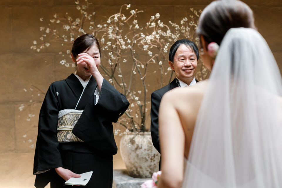 挙式前には親御様とのファミリーミートを設け、あえて対面前に手紙を読んでいただき、おふたりの想いを受け取った上でご対面のシーンを設けました。ご自身だけでなく相手の親御様にもお手紙をご用意され、「これからよろしくお願いします」そんな想いを込めました。