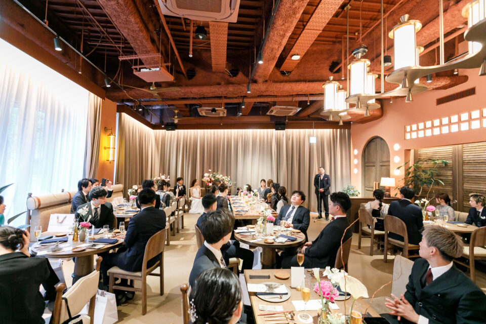 感謝の気持ちをしっかり届けながらも、純粋に大切なゲストとの時間も楽しみたい。そんな想いから、挙式と披露宴でメリハリをつけた時間をご提案しました。