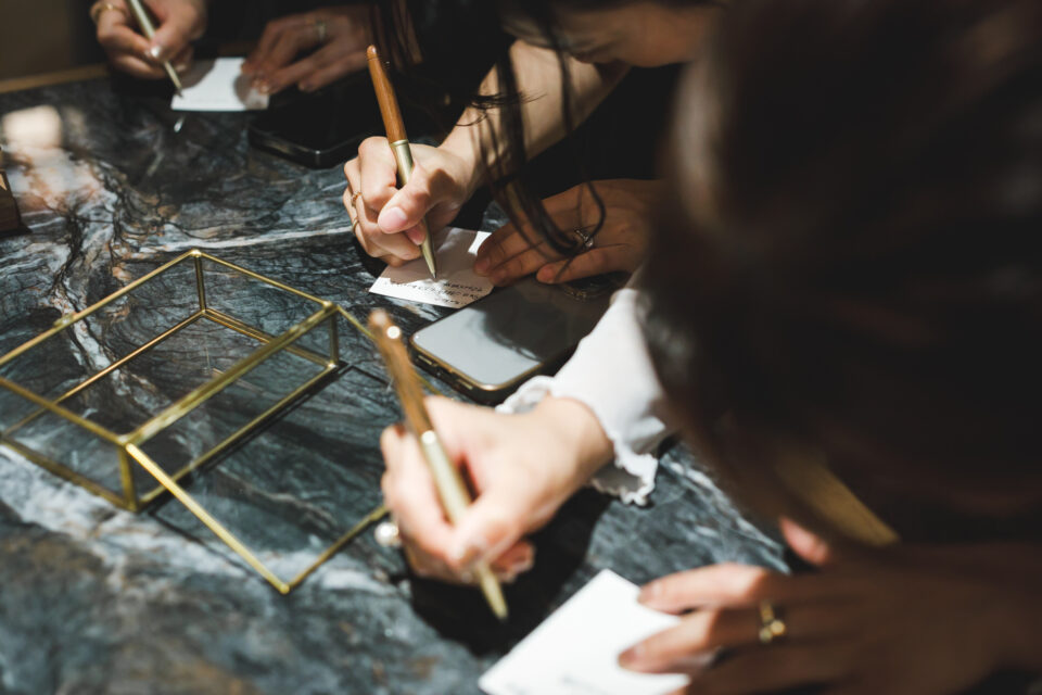 ウエディングパーティはゲストとの時間を大切にすべく、歓談の時間をメインに設けながらも、「心を通わせ合う」という想いから、アンサーレターのコーナーを設け、お返事を集めました。